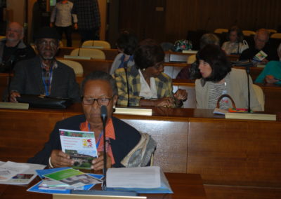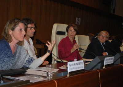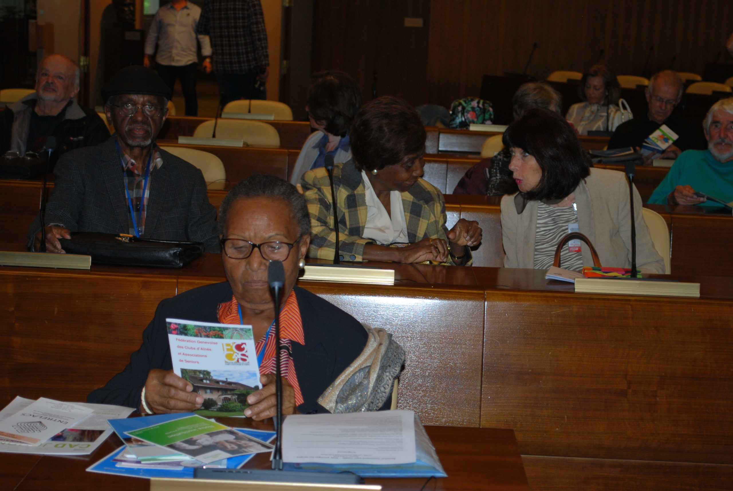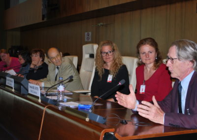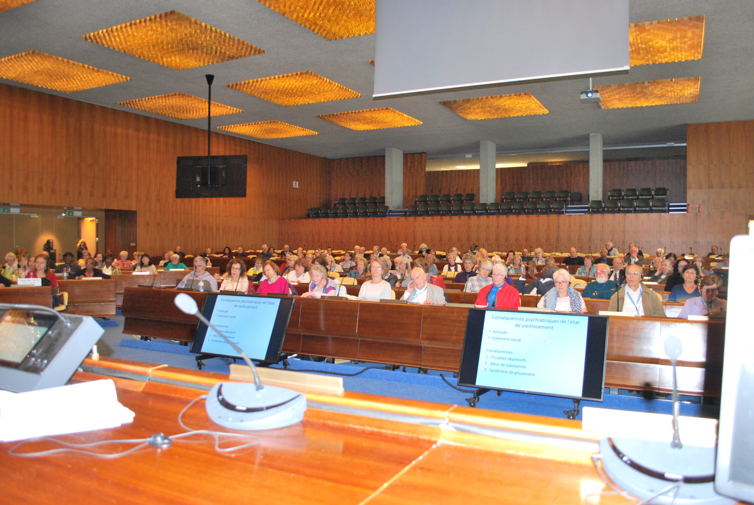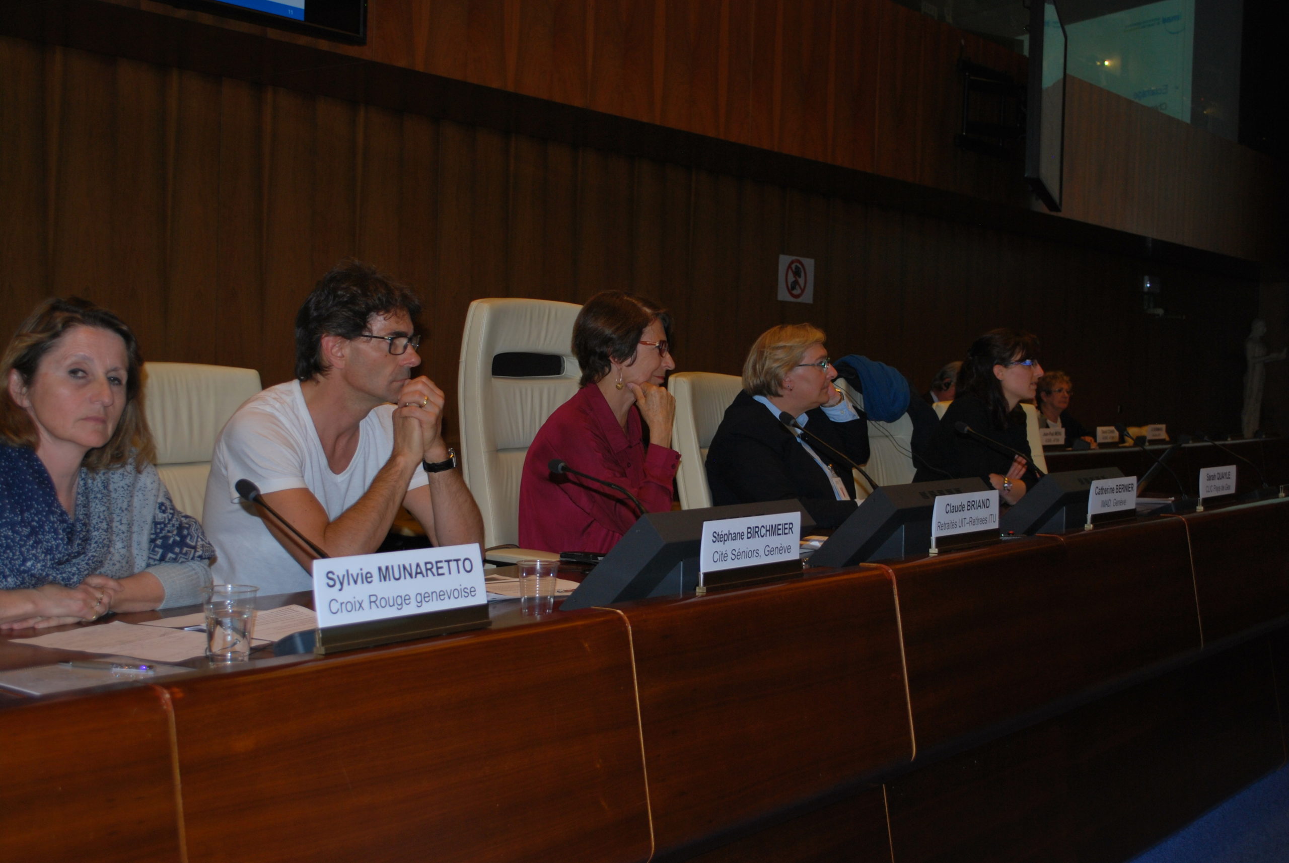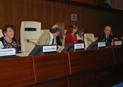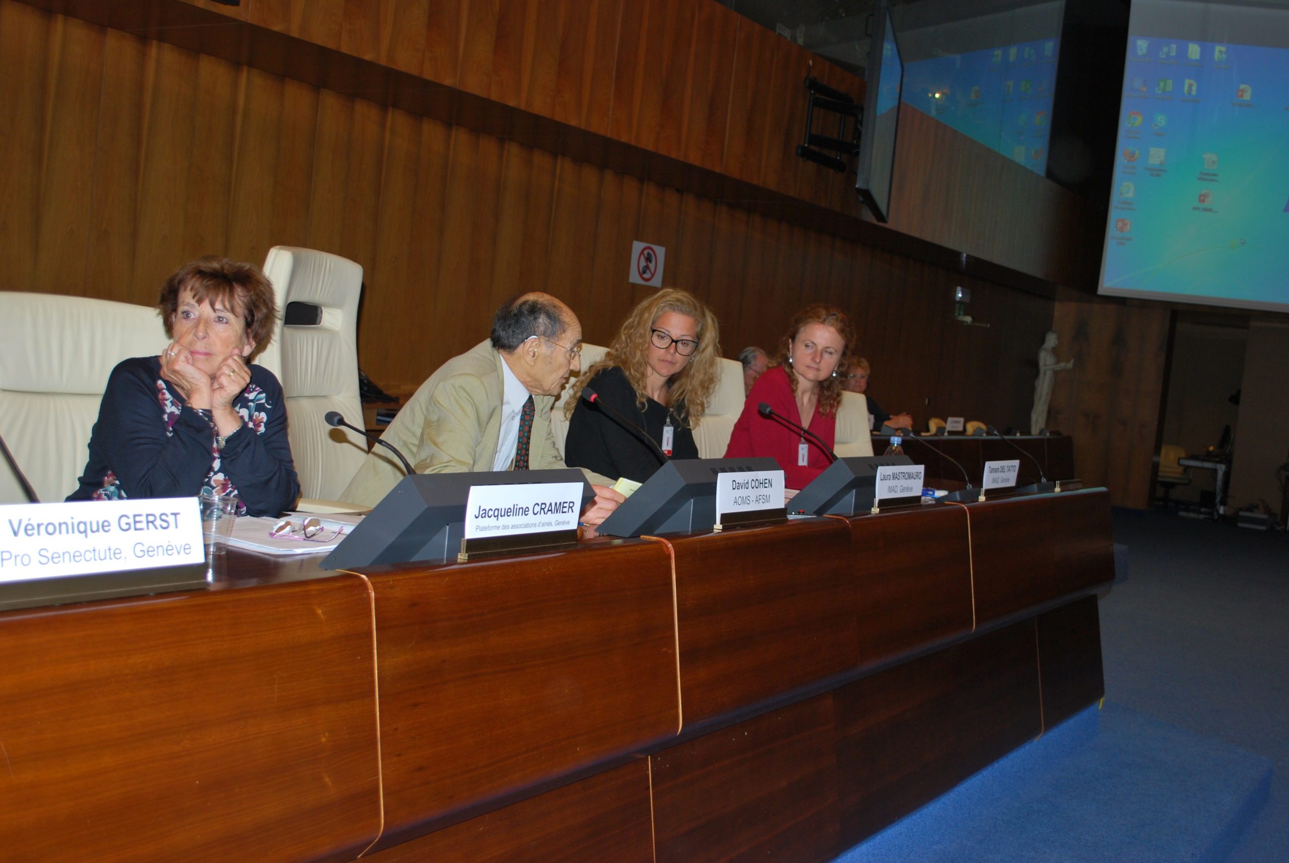 Après une présentation sur les principales conséquences normales et pathologiques du vieillissement sur la santé mentale, il s’en est suivi plusieurs interventions d’associations membres de la Plateforme des Ainés de Genève, Pro Senectute, Croix Rouge genevoise, l’institution genevoise de maintien à domicile (IMAD) et Cité Seniors du côté helvétique et du Centre local d’information et de coordination gérontologique (CLIC) du Pays de Gex du côté français, toutes suivies de questions et commentaires des participants.