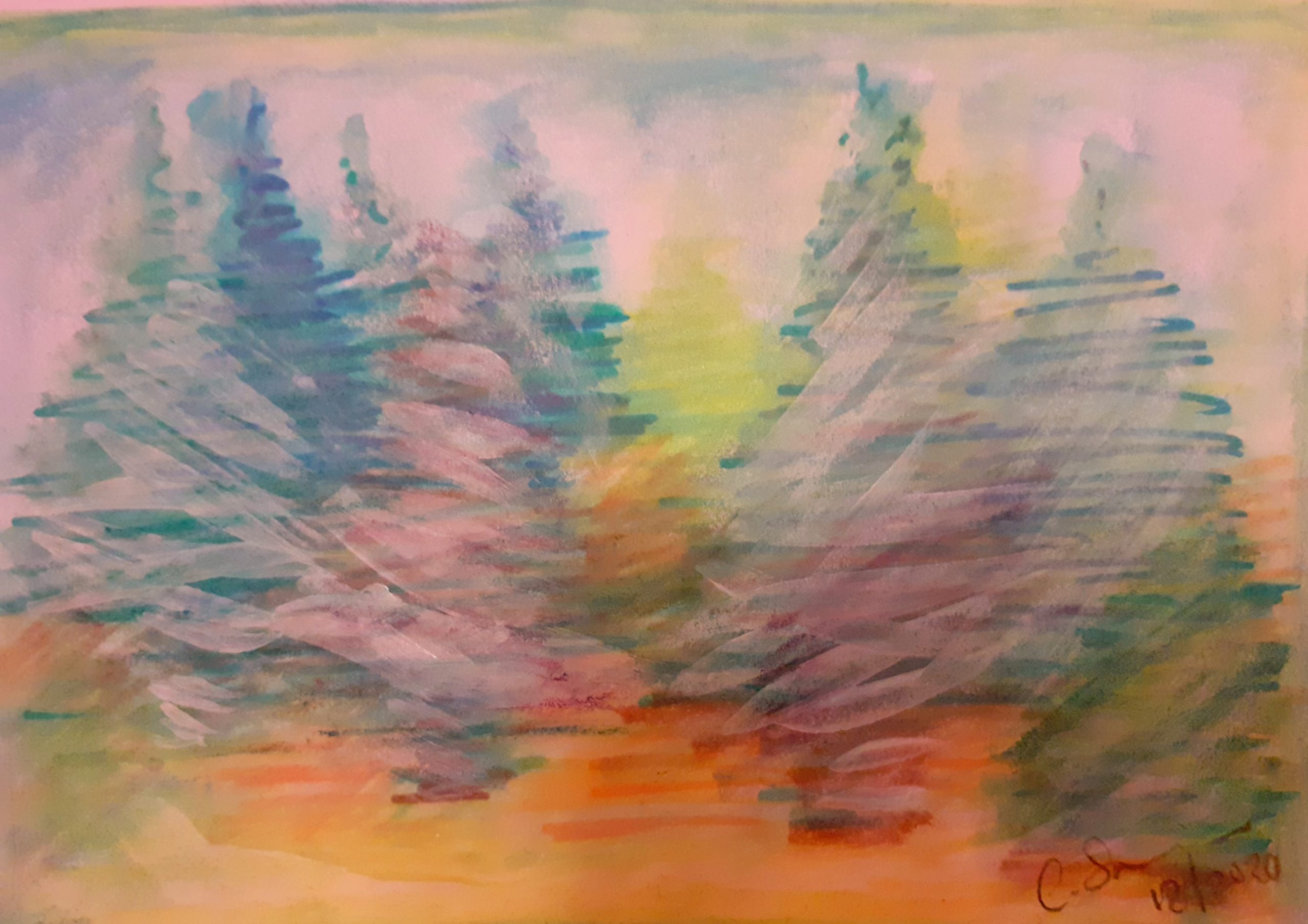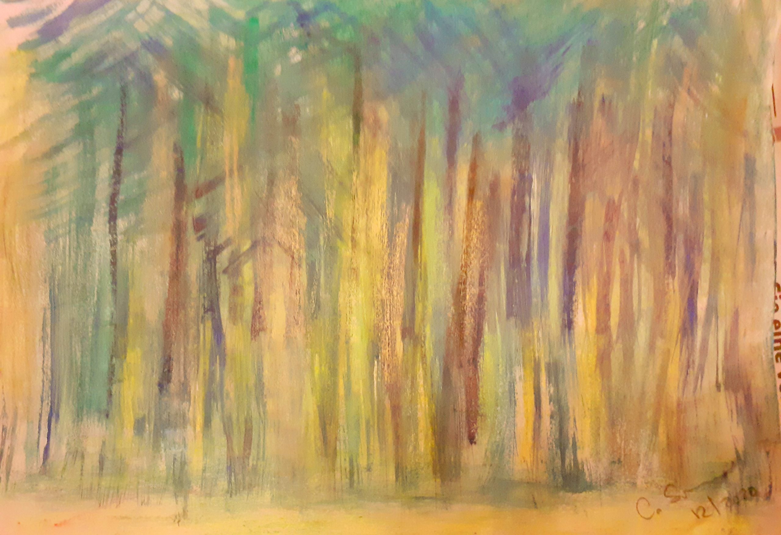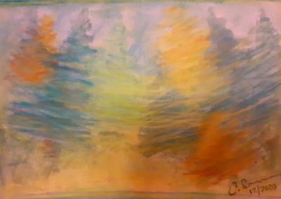 - Soleil dans la Forêt – pastels aquarelle et acrylique
