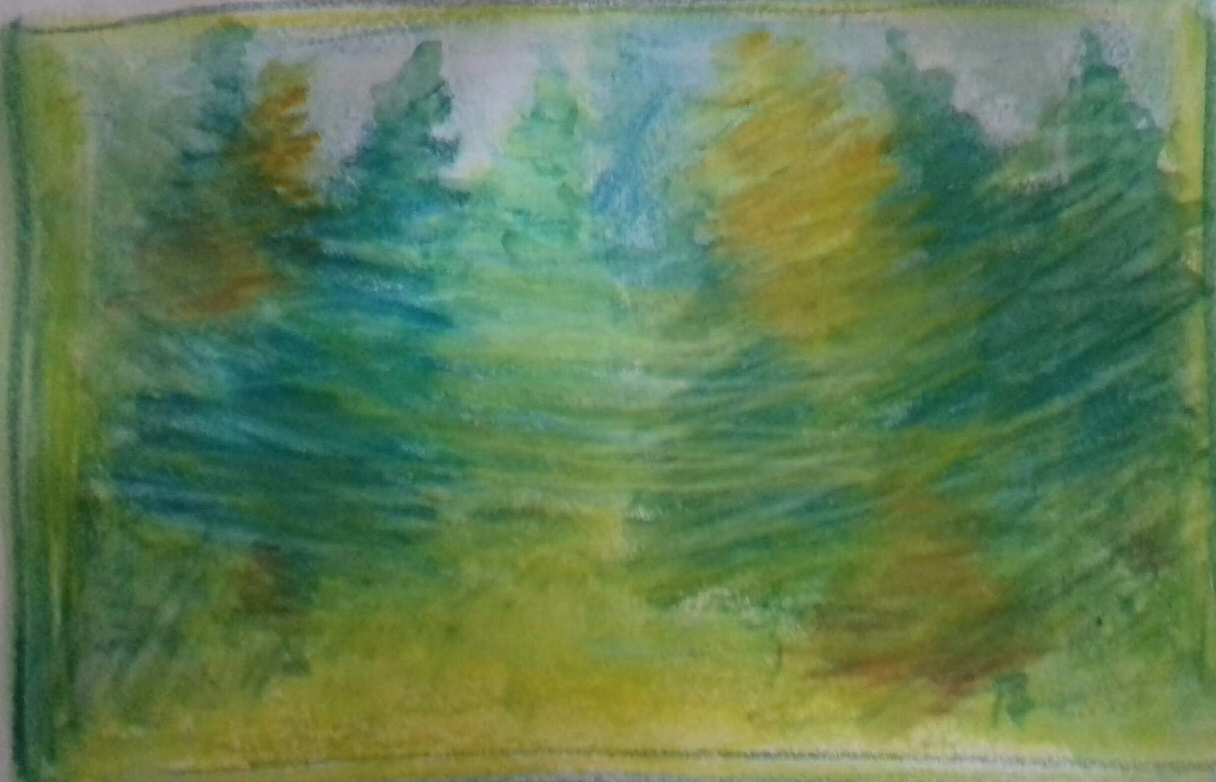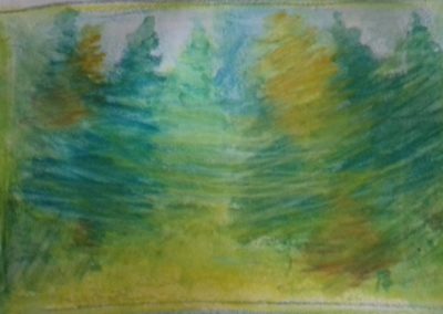 - Forêt verte, pastels aquarelle et acrylique