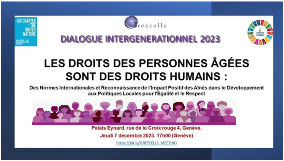Greycells et ses partenaires organise un événement à Genève le 7 décembre, 17h au Palais Eynard sur le thème du « Dialogue Intergénérationnel 2023 », une initiative qui met en lumière les droits des personnes âgées comme piliers des droits humains.